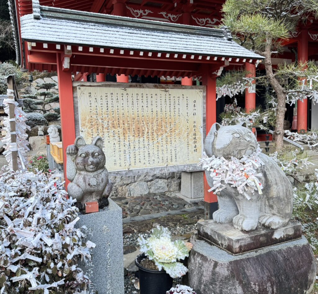 後に村人がお松を哀(あわ)れんで建立したのが「お松大権現(まつだいごんげん)」で、現在も『猫神さん』として親しまれております。