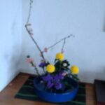 今月のお花(木瓜、ピンポンぎく、スターチス)